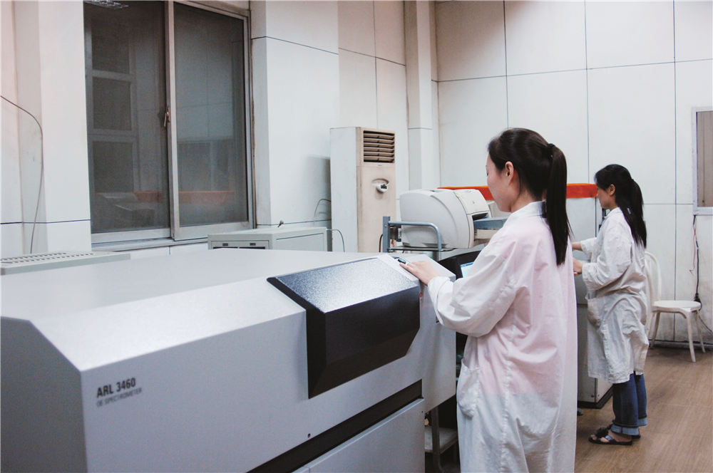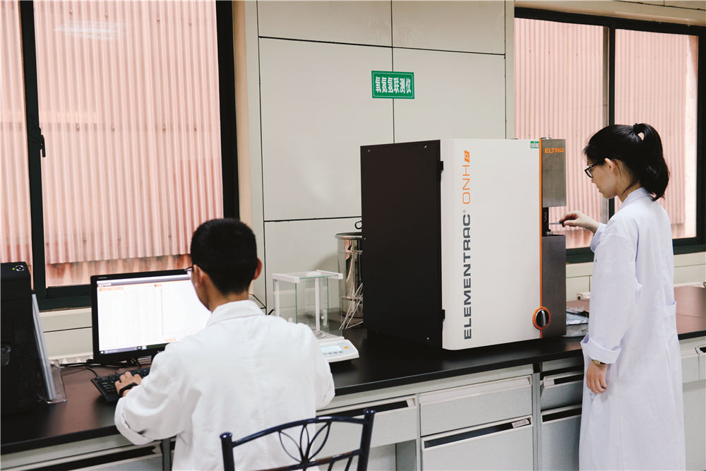 研发中心占地面积3780m2,设有化学分析室,荧光分析室、物理性能检测室、金相室、ONH气体分析室、直读光谱分析室等,还配套建设有机加工中心、低倍酸洗室等。研发中心总投资5000余万元,引进国际先进水平、高精密分析检测设备240余台(套),如日本株式会社电子探针(配EBSD)、德国蔡司扫描电子显微镜+牛津能谱仪、美国利曼电感耦合等离子体光谱仪(ICP)、全自动蔡司金相显微镜、美国GE水浸超声波自动C扫描探伤仪、瑞士Ernst全自动端淬硬度计等。